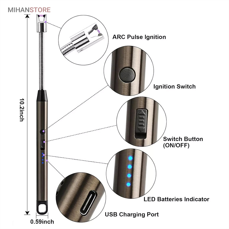 این فندک به چراغ‌های LED چهار حالته مجهز شده که میزان شارژ باقی‌مانده را نمایش می‌دهند. با این قابلیت، کاربر همیشه از وضعیت شارژ دستگاه مطلع بوده و می‌تواند در زمان مناسب آن را شارژ کند. همچنین، دکمه‌ی خاموش/روشن ایمن، از روشن شدن ناگهانی و ناخواسته‌ی دستگاه جلوگیری کرده و امنیت کاربر را تضمین می‌کند. علاوه بر این، فندک دارای قابلیت خاموش شدن اتوماتیک است که در صورت عدم استفاده، انرژی مصرفی را کاهش داده و عمر باتری را افزایش می‌دهد.